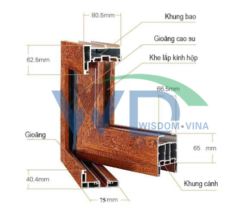 nhôm xingfa, nhôm Wisdom..., giúp cửa đạt độ kín khít tuyệt đối, giúp cửa chắc chắn.